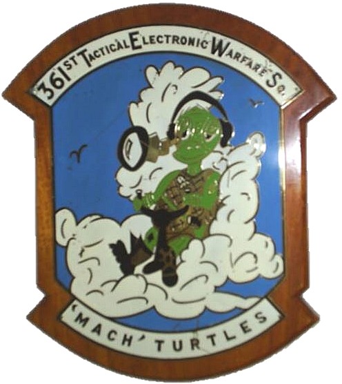 Another piece of EC-47 memorabila, the "Mach Turtles" plaque of the 361st TEWS, now in the custody of J.C. Wheeler.